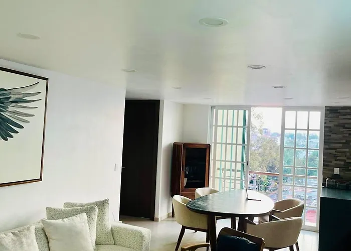 Encanto Urbano, Depa Moderno Mexico-stad appartement van 80 m² biedt een gunstige ligging ten opzichte van stadsattracties zoals Catedral de Corpus Christi, gelegen op 6 minuten lopen ervandaan. Draadloos internet en privéparkeren behoren tot de benodigdheden die gasten tot hun beschikking hebben.